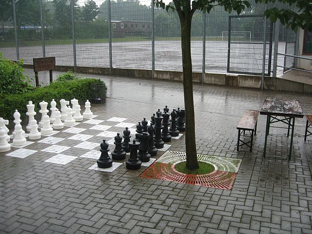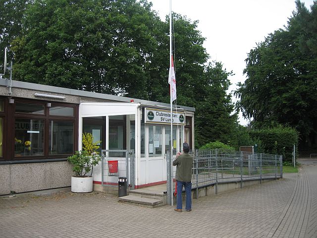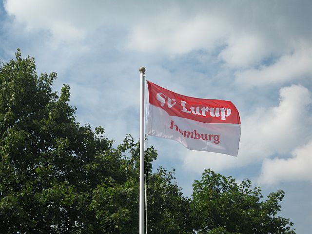 neu ist der Flaggenmast...Die Flaggenparade wird vom Platzwart durchgeführt...