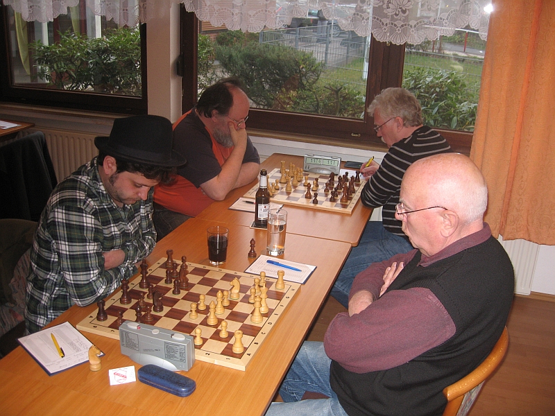 Kurt Herzog (v.r.) verpasste ein mögliches Remis, Jens Christensen gewann sicher...