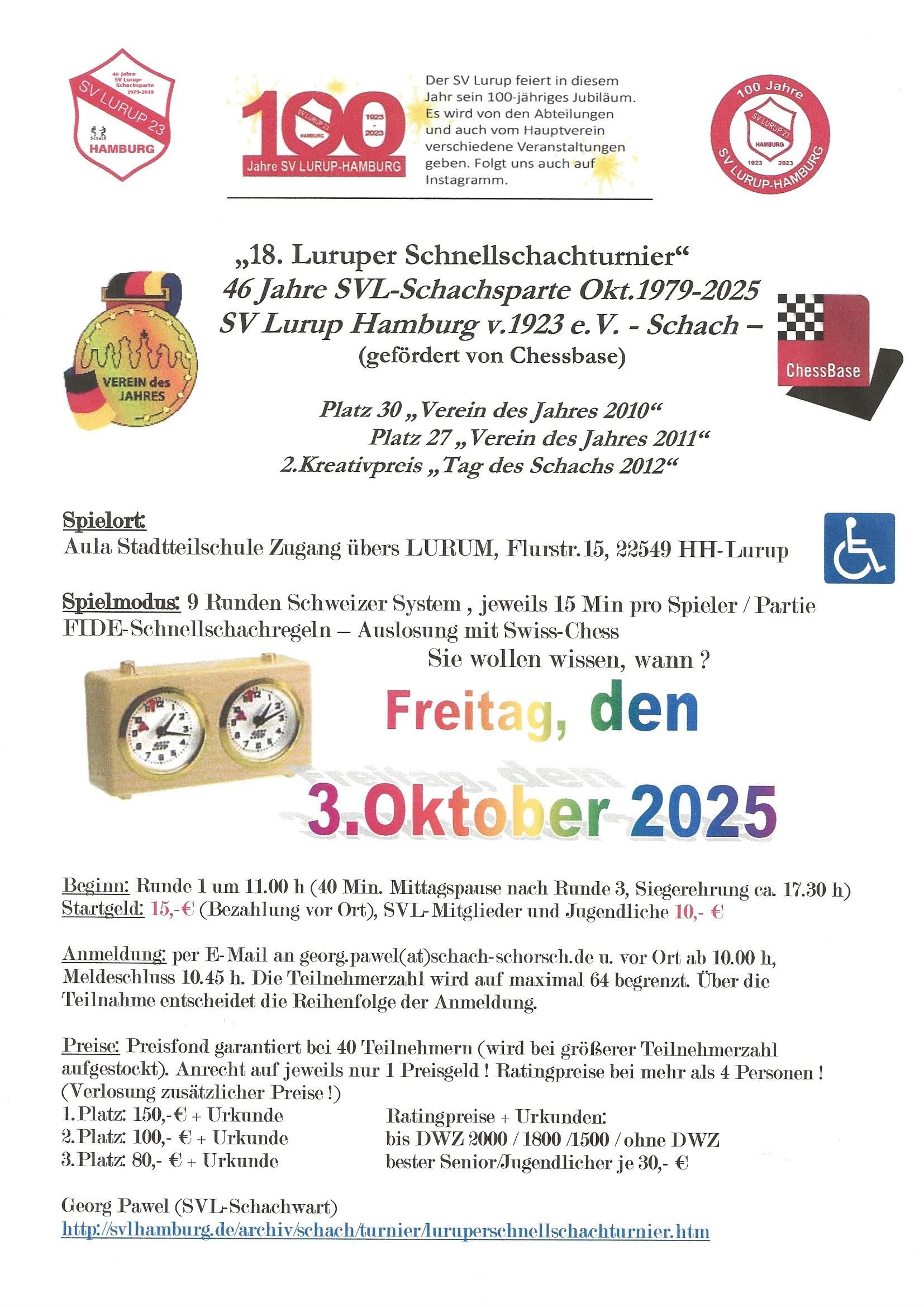 vom "18.Offenen Luruper Schnellschachturnier" v. 3.Oktober 2025