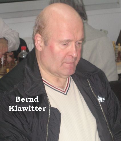 Bernd Klawitter kam Ende 2006 vom HSK zu uns und stieg als Nachzügler in die schon laufende CM 2006 ein. In seiner Vorrundengruppe belegte er Platz 8. Als Spieler der Zweiten spielte er bei den HMM2007 erfolgreich an Brett 3 hinter seinem langjährigen Freund Kurt Herzog, mit dem er schon in den 60-er Jahren zusammen Vereins-Schach spielte... Zudem nahm er an Deutscher Amateurmeisterschaft, Harburger Meisterschaft und bei der HET2007 teil. in der SVL CM2007 hatte er gute Chancen, die Endrundengruppe A zu erreichen. Bei den PM2007 schied er im Viertelfinale erst nach einer Schnellschach-Entscheidungspartie gegen Otto Cassens aus. Bernds DWZ lag im Januar 2008 bei 1519 Punkten. Bei den HMM2008 spielte er in Kreisklasse C an Brett 1 der Zweiten. Ende Juni 2008 trat Bernd leider aus und nahm ebenfalls eine schöpferische Pause.